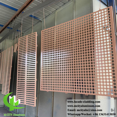 高品質のアルミニウム合金で3mm厚さと耐久性のあるPVDF塗装で作られた高級孔付き金色の金属シートファサードシステムです